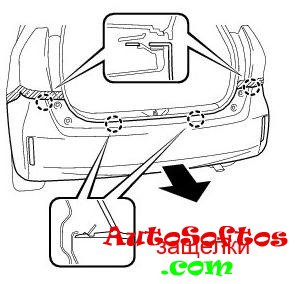 -с помощником освобождаем бампер из защелок в крыльях, под задними фонарями и в проеме багажника.