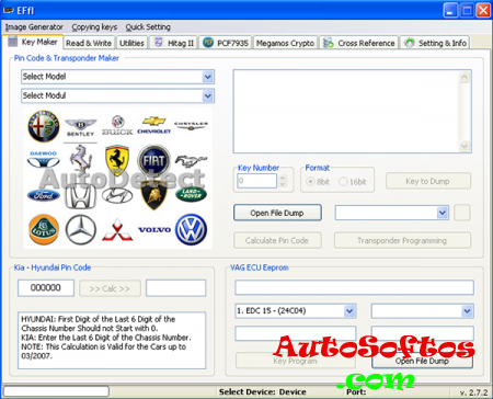 EFfI - Second Life for Zed-Bull clone add a lot more models to the traditional Zed-Bull, this software can work with all clones and original devices: 1.- Finding PIN Code, preparing precoded transponders and programming transponders from EEPROM and MCU. 2.- Transponder Cloning. 3.- Producing Transponders for OBD Programming. 4.- Hitag2 Transponder Programmer. 5.- Additional function like: - Reading kilometer, VIN number and key number information from original BMW key and writing to original BMW remote key. - Finding PIN code from VIN number for HYUNDAI and KIA. - PC software includes a wide-range transponder catalog, key fob procedures and more information. - PIN code finding for 33 Renault and 45 Peugeot from transponder. - Unlocking the 48(magic II) type locked transponder and make it re -usable. - Saving transponder information into database including crypto transponders.