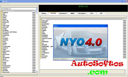 Калькулятор кодов NYO4 - это универсальный калькулятор для подсчета кодов автомагнитол(CARRADIO), изменения показаний одометра (DASHBOARD), сброса "crash-data" в блоках управления подушками безопасности (AIRBAG), вычисления логина иммобилайзера (IMMO, ECU) и подсчета кода навигационных систем (NAVIGATION).