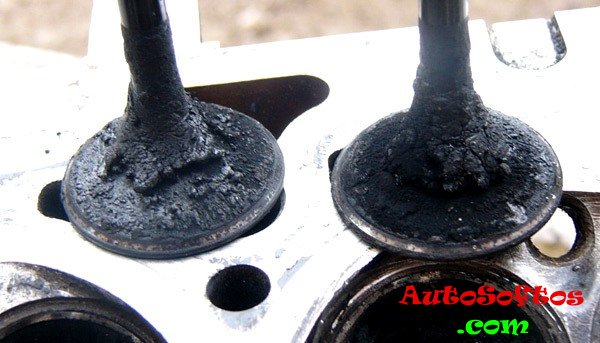 Нагар на клапанах. Во-первых, он может сужать каналы отработанных и вновь поступающих газов, из-за этого мощность начнет падать. Во-вторых, клапана могут не до конца закрываться, что может привести к их прогоранию.