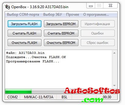 После завершения загрузки сервисной прошивки отключаем блок от питания, переводим его в бут (BSL режим):