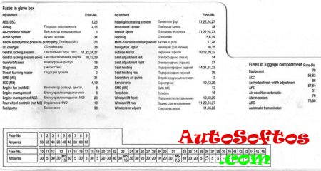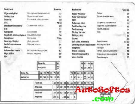 Слева вверху должна располагаться брошюра с точным описанием предохранителей.