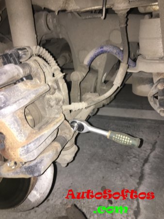 8. На переднем левом колесе не забываем поменять датчик износа колодок