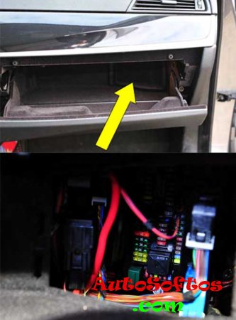 Как и в предыдущих поколениях пятерки, он располагается в вещевом ящике (бардачке). Для доступа просто откройте защитную крышку.