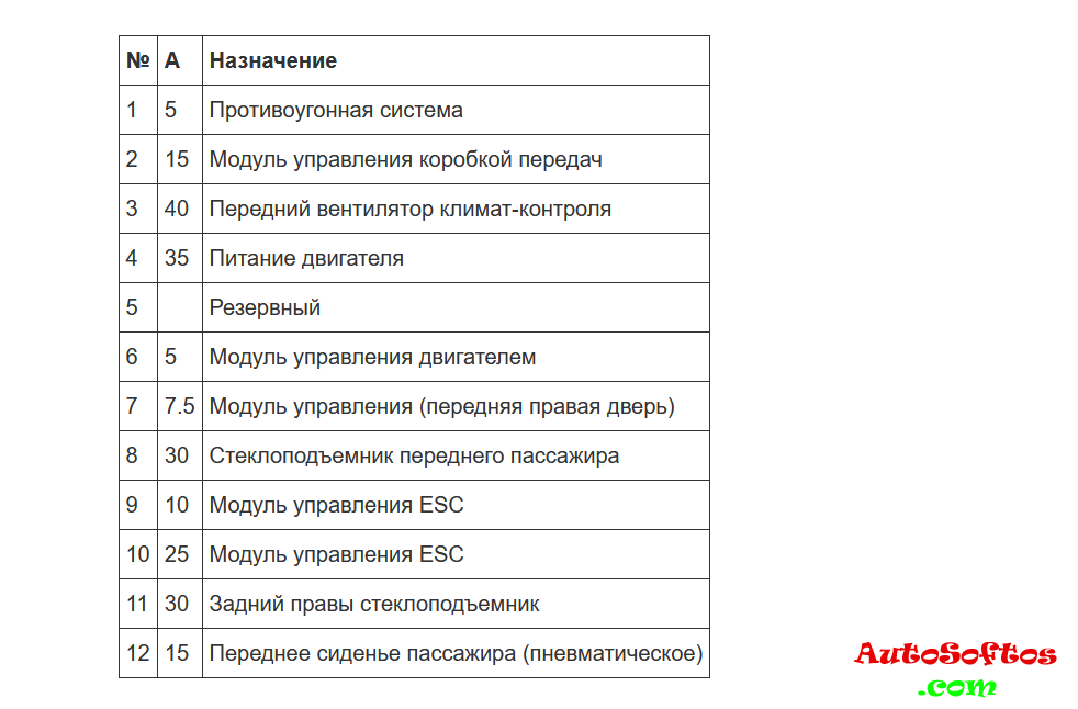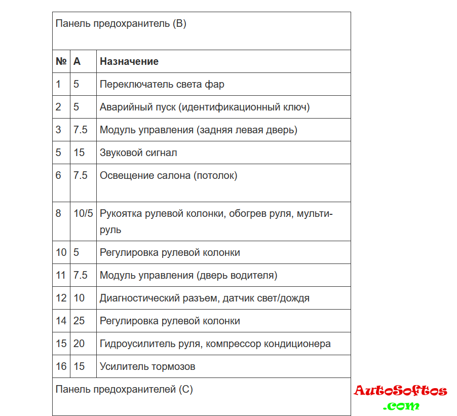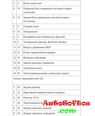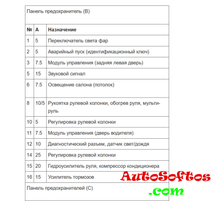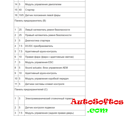 Блок предохранителей и реле в области блока управления бортовой сети. (под передней панелью в пространстве для ног со стороны водителя). Установленные в нём предохранители обозначаются на электросхеме «SD».