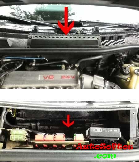 Он расположен с правой стороны около фары в пластиковом коробе. Для моделей с годом выпуска до 2003 схема вот такая: