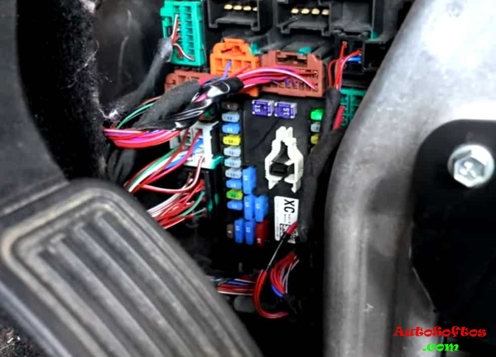 Основной блок предохранителей и реле находится в тыльной части подкапотного пространства.
