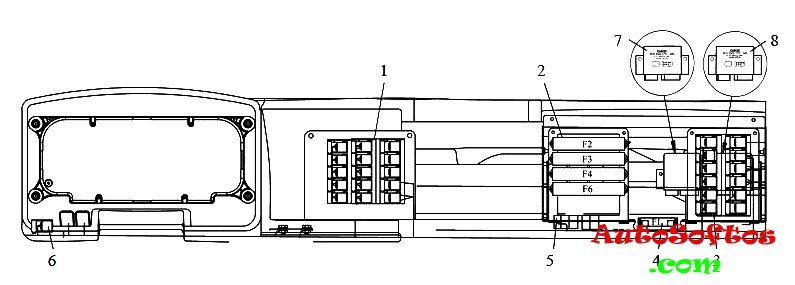 Блок силовых предохранителей может быть установлен на панели передка кабины.