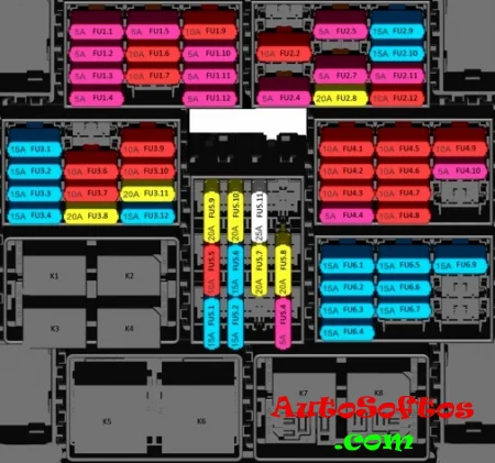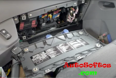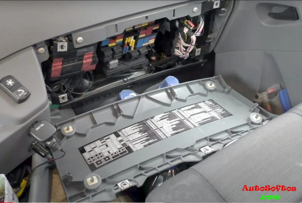 Основной блок с предохранителями и реле находится в салоне, за защитной крышкой.