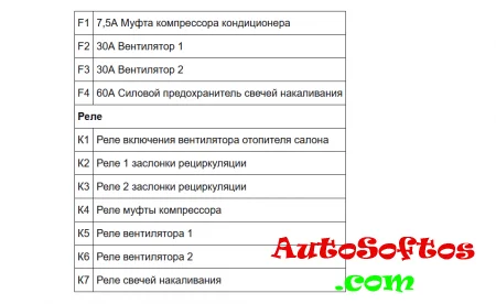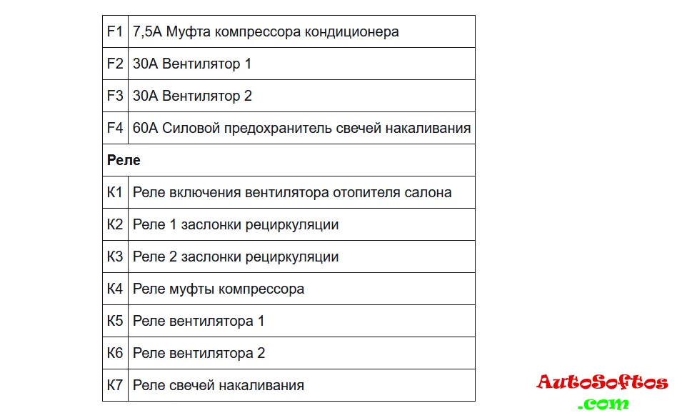 Реле свечей накаливания и силовой предохранитель свечей накаливания для автомобилей с двигателем “Iveco” расположены под капотом с левой стороны на щитке передка.