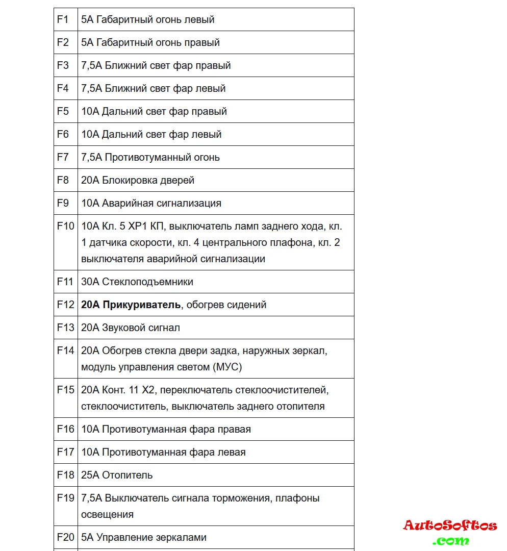 За прикуриватель отвечает предохранитель номер 12 на 20А.