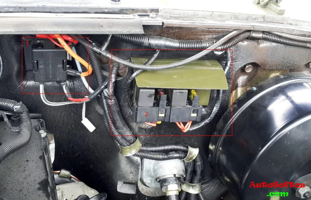 Блок силовых предохранителей (1) состоит из плавких вставок высокой мощности. На автомобилях УАЗ 315143 и УАЗ 315148 он состоит из 4 вставок, на остальных из 2.