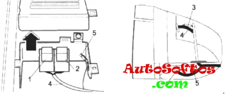 Основной блок находится около аккумуляторной батареи и закрыт защитной крышкой, которая держится на двух боковых защелках.