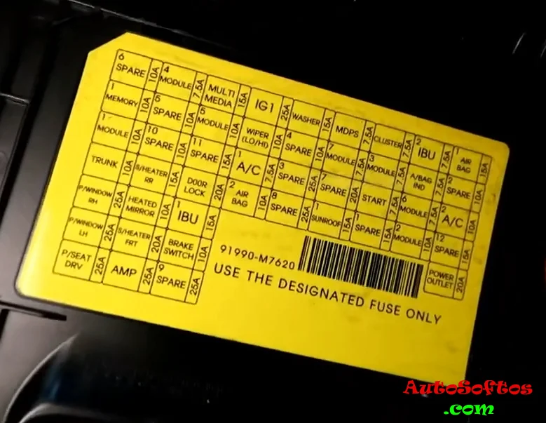 В салоне автомобиля блок с предохранителями находится в нижней части панели приборов с левой стороны.
