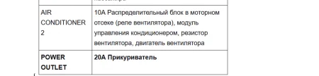 За работу прикуривателя и розеток отвечают предохранители которые находятся в блоке предохранителей панели приборов (см. предохранитель «POWER OUTLET» — Прикуриватель), а также в блоке предохранителей в моторном отсеке (предохранители «POWER OUTLET 2» — Front Power). Розетка, «POWER OUTLET 1» — реле розетки).