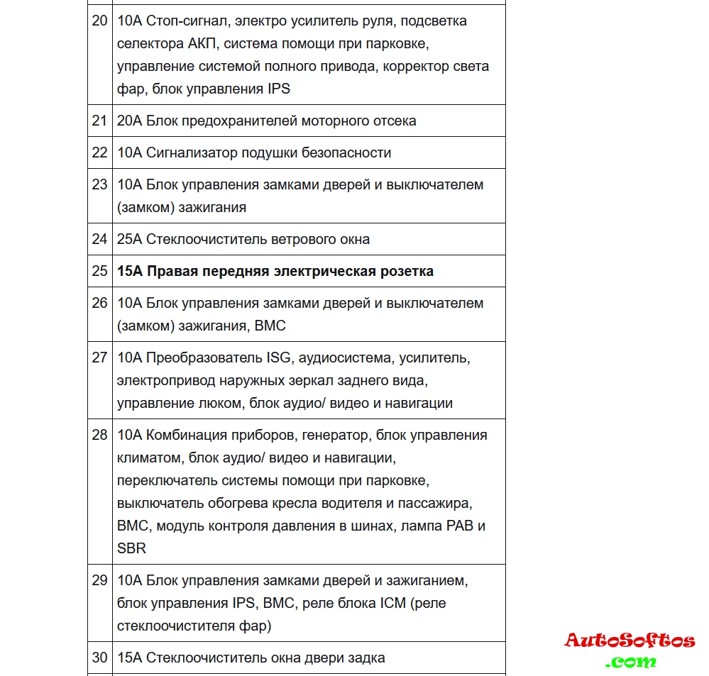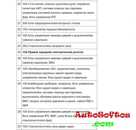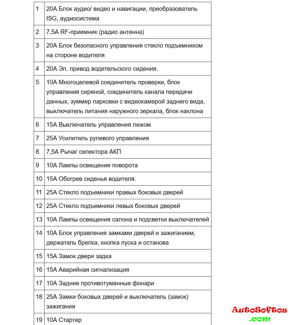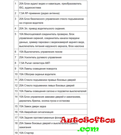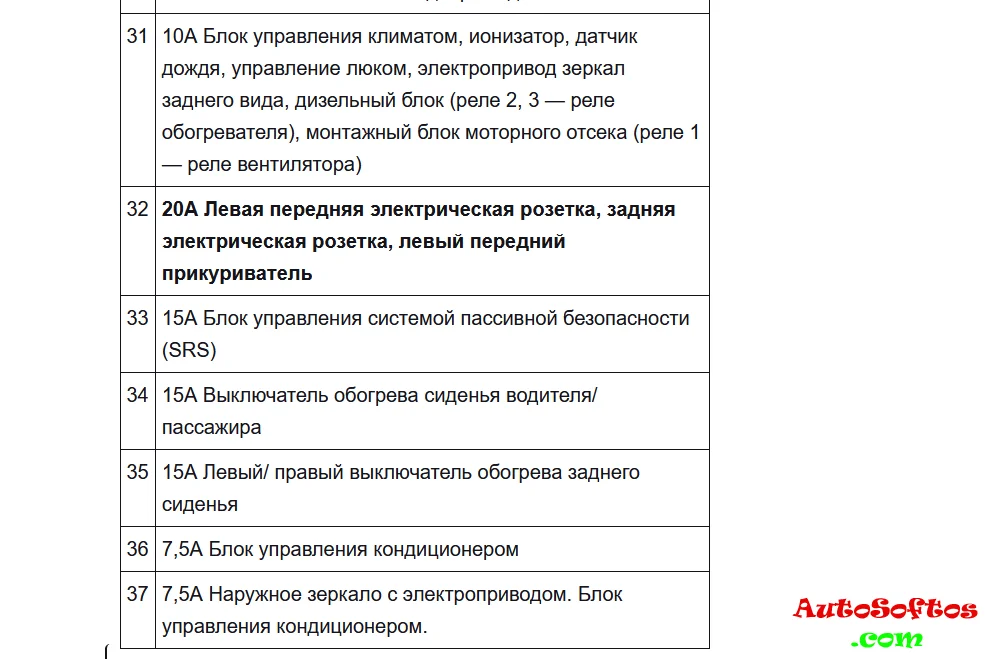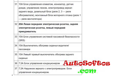 За работу прикуривателя и дополнительные розетки отвечают предохранители под номерами 25 и 32.