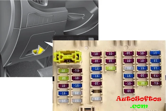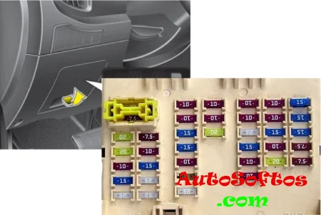 Расположен под панелью со стороны водителя. Для доступа уберите защитную крышку.