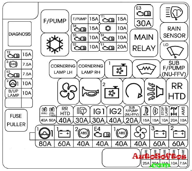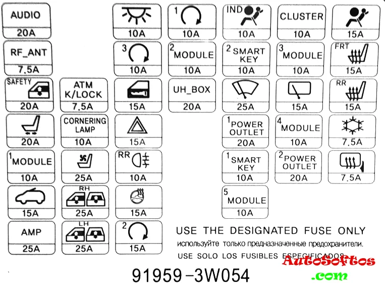 Здесь вы найдёте описание блоков предохранителей и реле Киа Спортейдж 3 со схемами блоков и местами из расположения. Выделим предохранитель отвечающий за прикуриватель. Sportage 3 доступен в трёх комплектациях: S, SE и SX как с бензиновыми так и дизельными двигателями. От этого и зависит количество элементов в блоках предохранителей и реле.