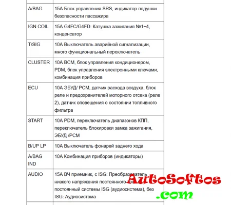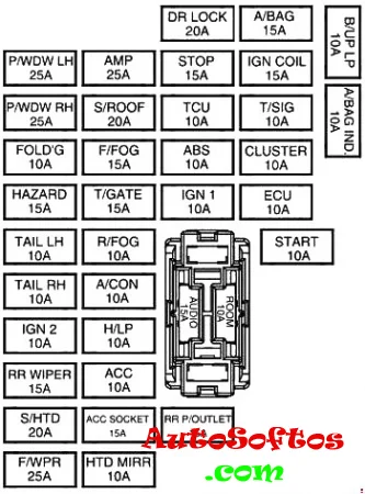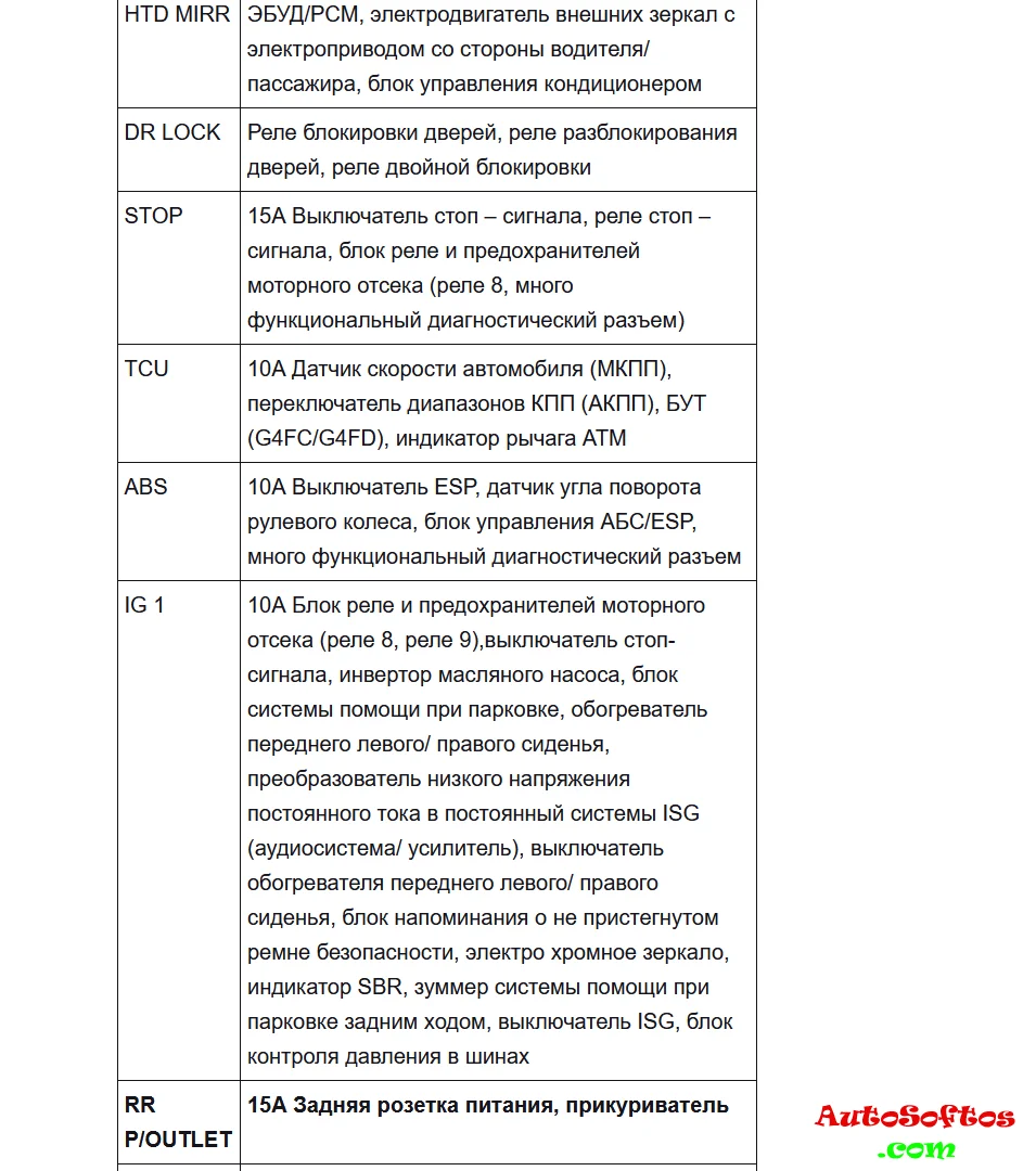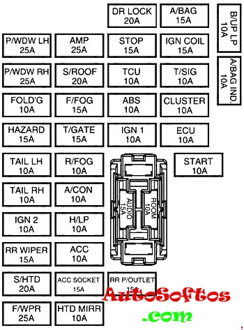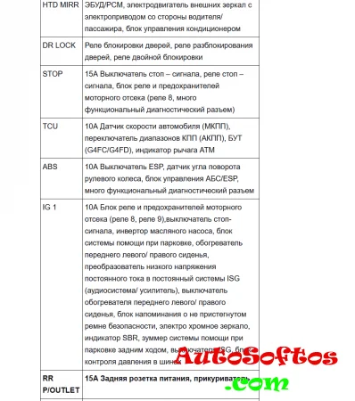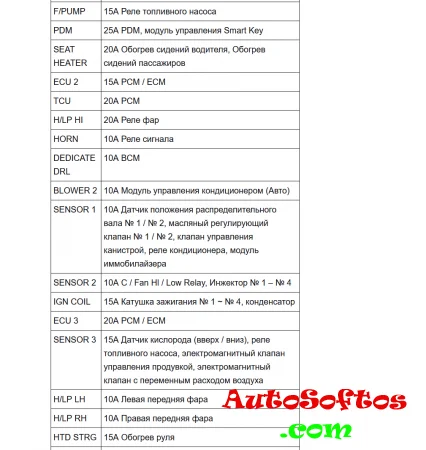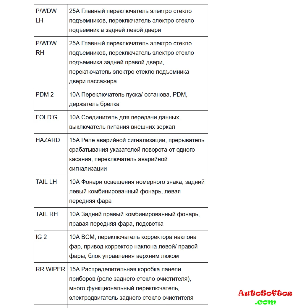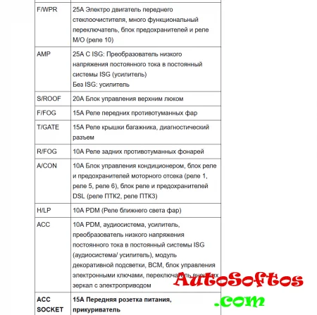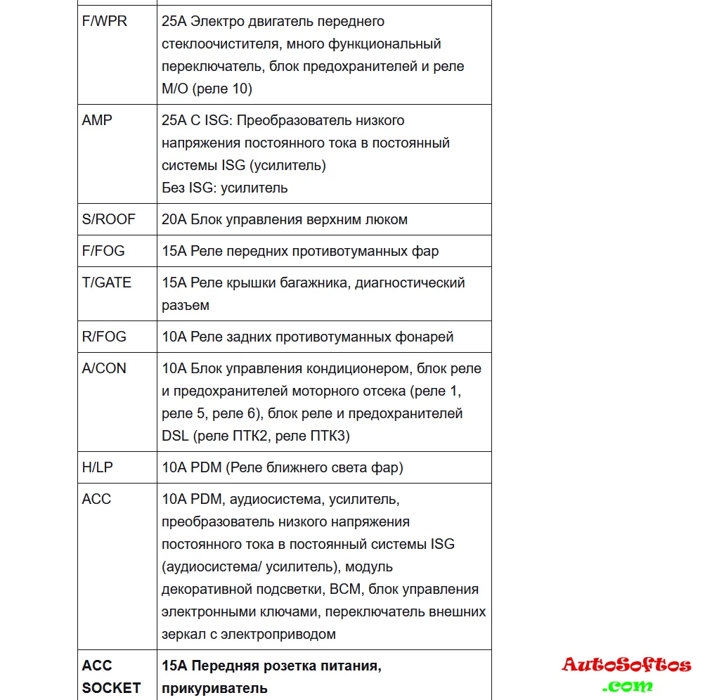 Предохранитель переднего прикуривателя обозначен как ACC SOCKET, а задний – RR P/OUTLET.
