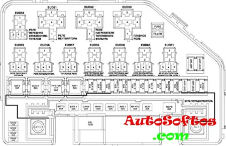 За блоком предохранителей, под панелью, отдельно устанавливается блок реле модуля распределения питания, отвечающей за кнопку старт / стоп и её подсветку.
