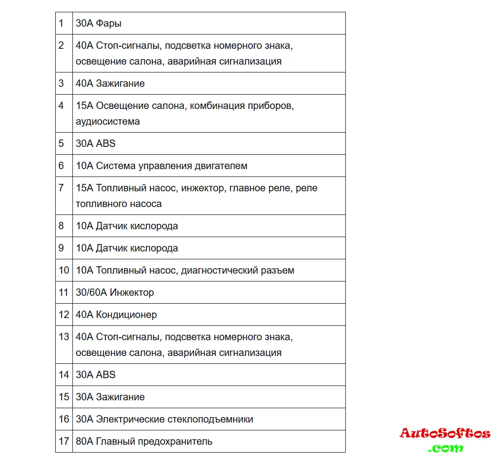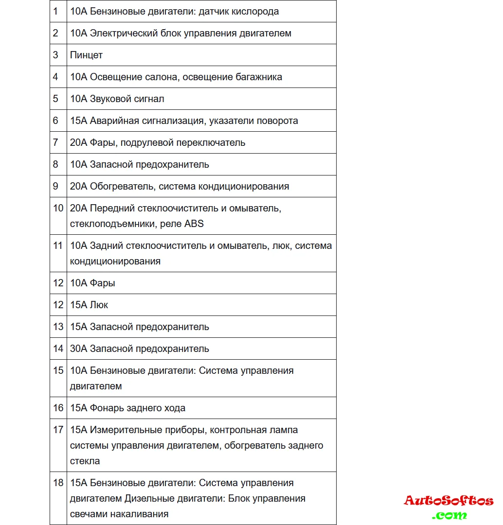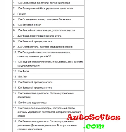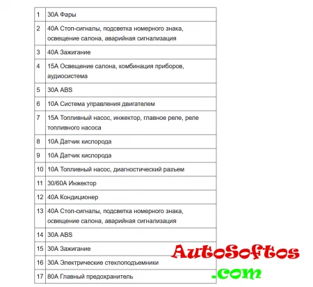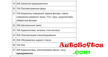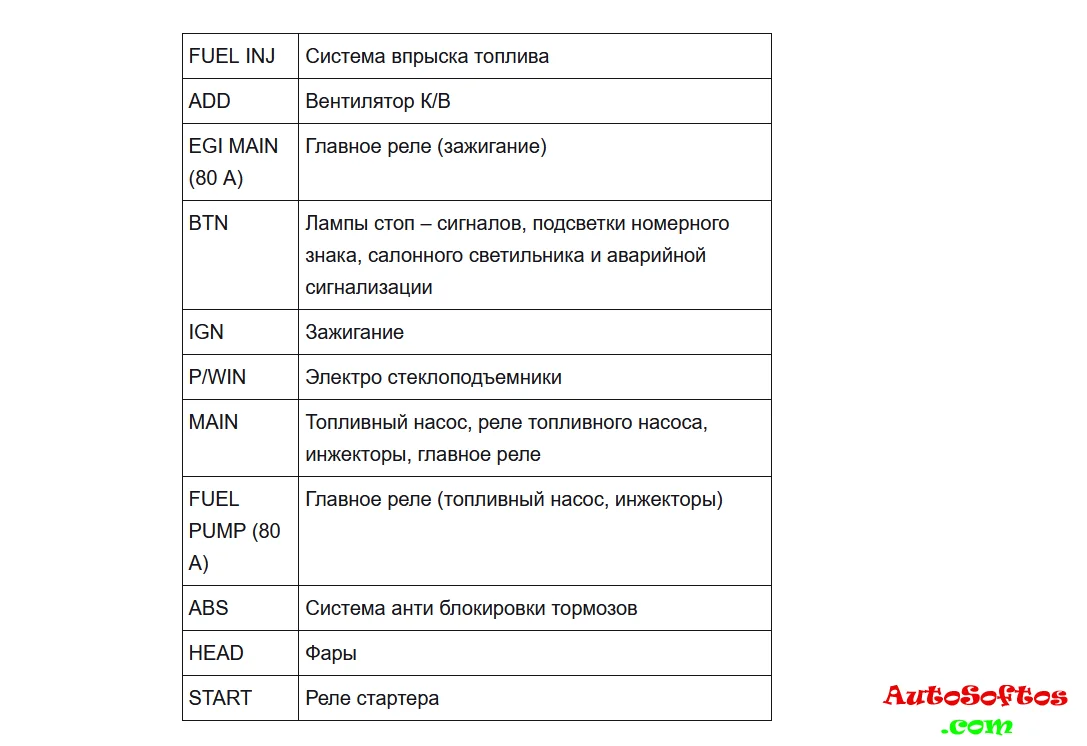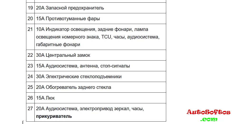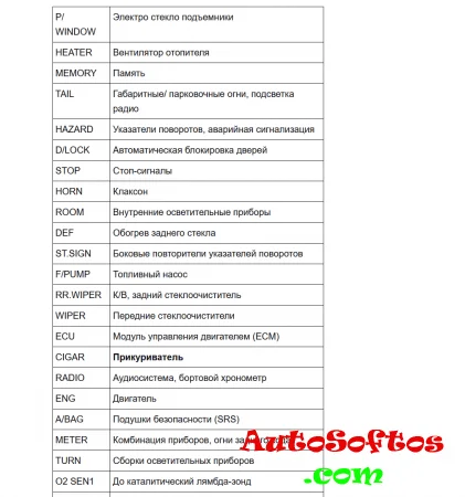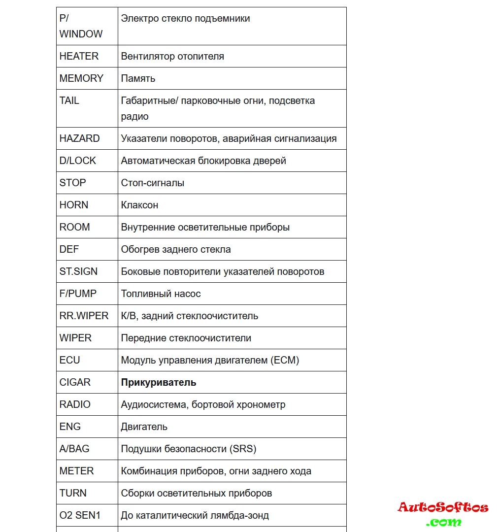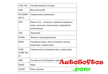 Расшифровка предохранителей