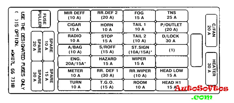 Здесь Вы найдёте описание предохранителей и реле Киа Спортейдж 1 со схемами блоков и фото-примерами исполнения. Выделим предохранитель отвечающий за прикуриватель.