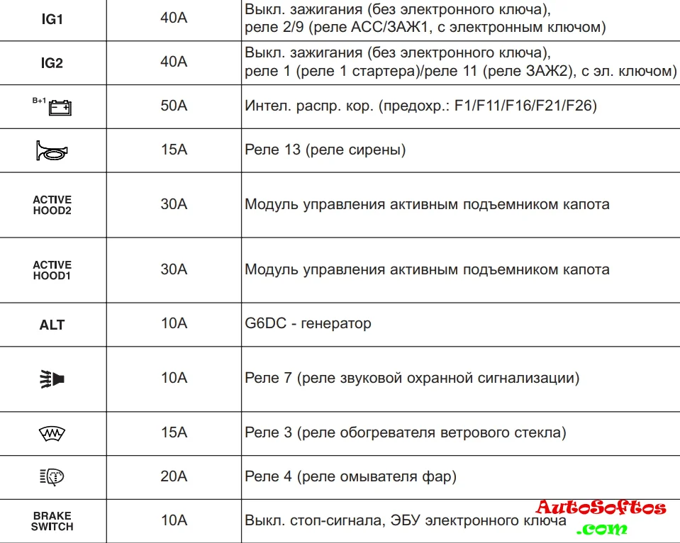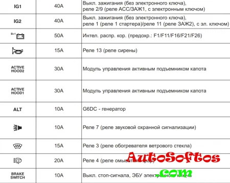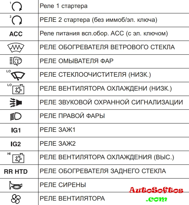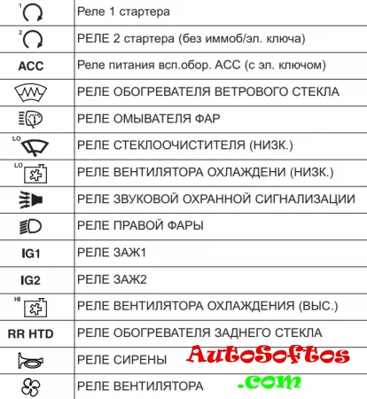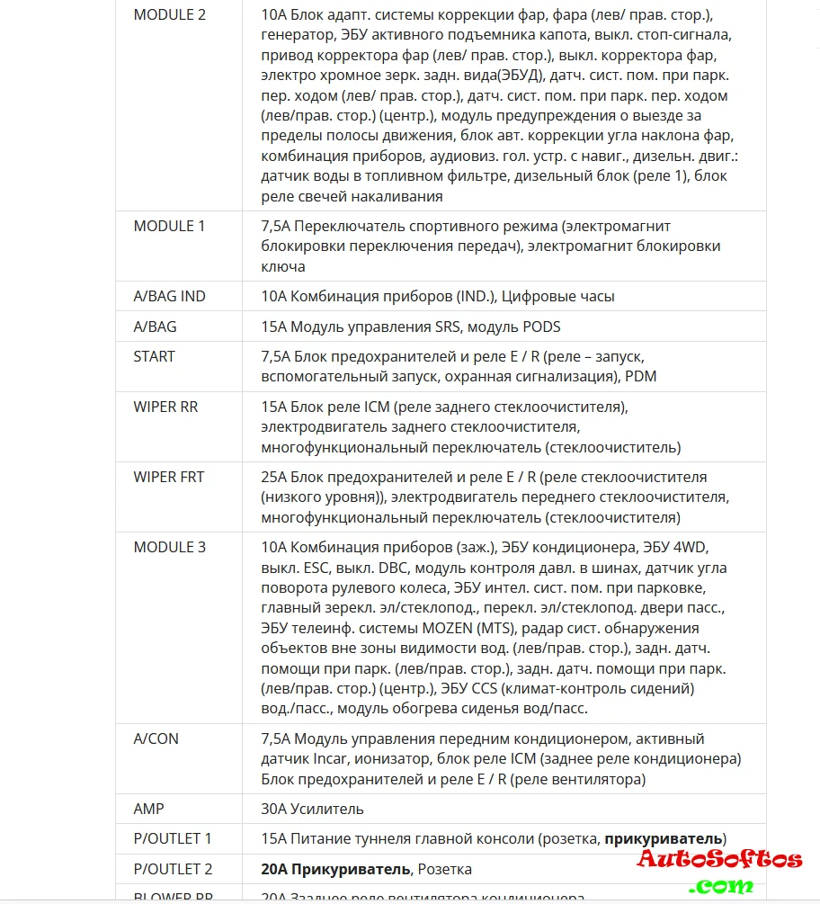 За прикуриватель и дополнительные розетки отвечают предохранители обозначенные как P/OUTLET.
