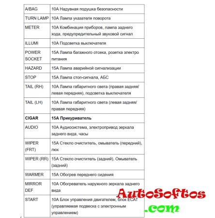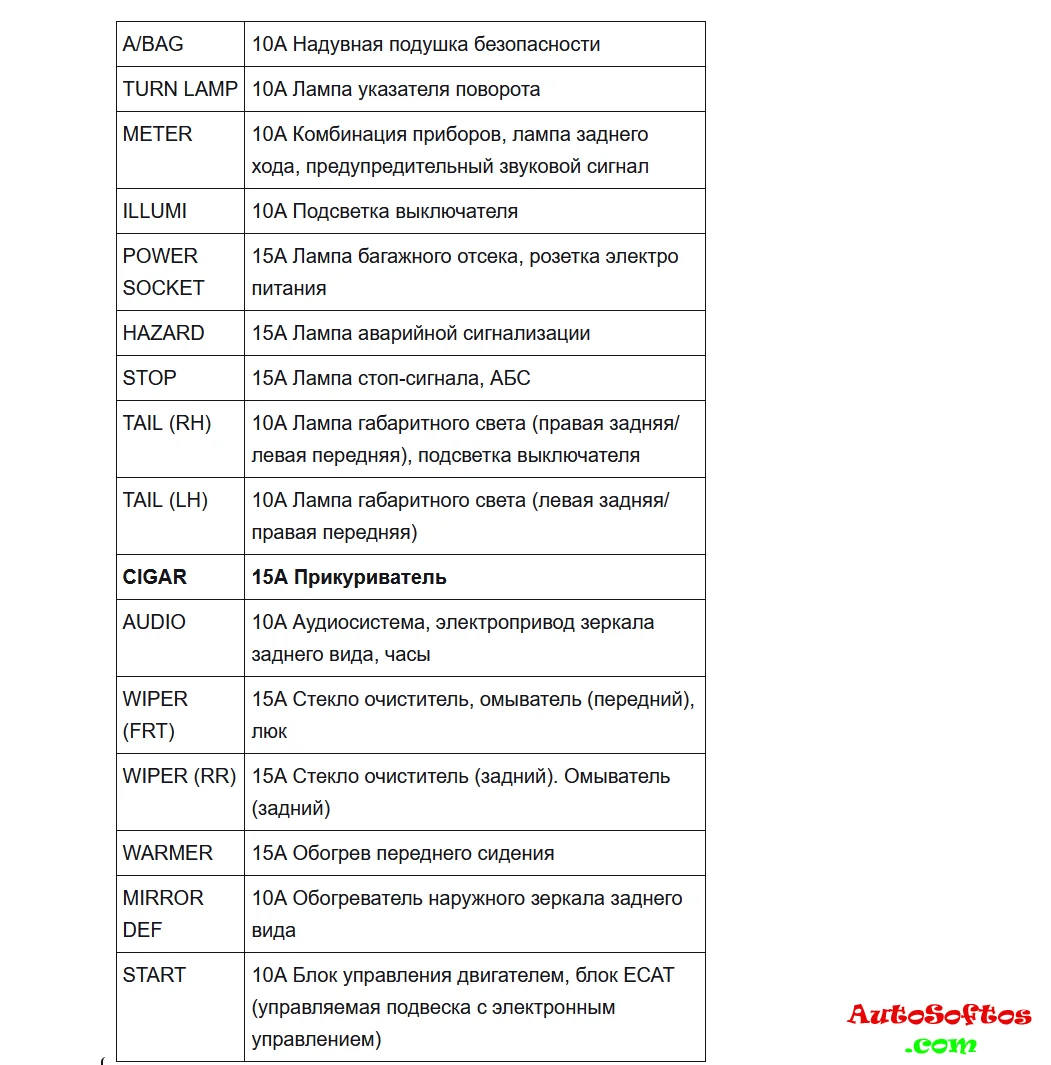 Предохранитель прикуривателя обозначен как CIGAR на 15А.