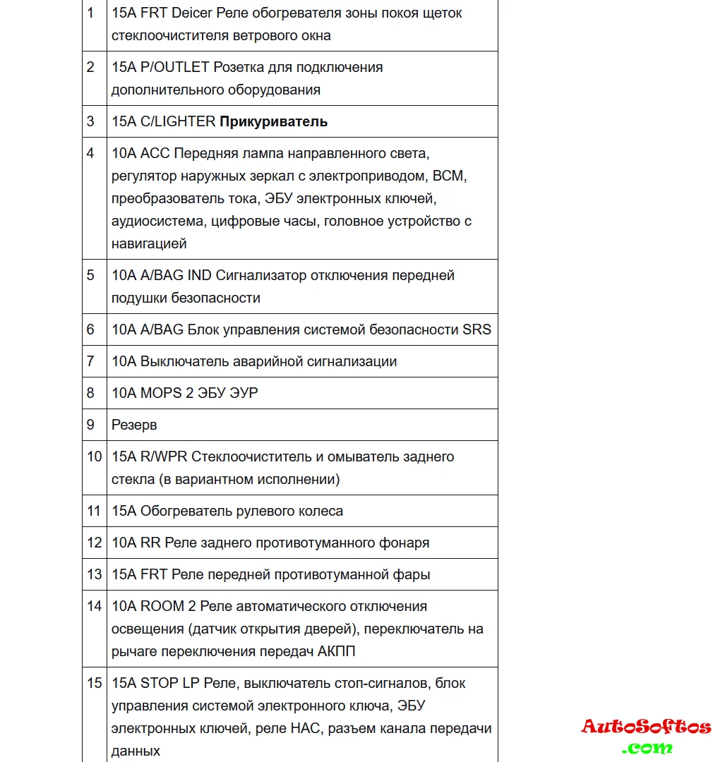 За дополнительные розетки отвечает предохранитель номер 2, а за прикуриватель номер 3 на 15А.