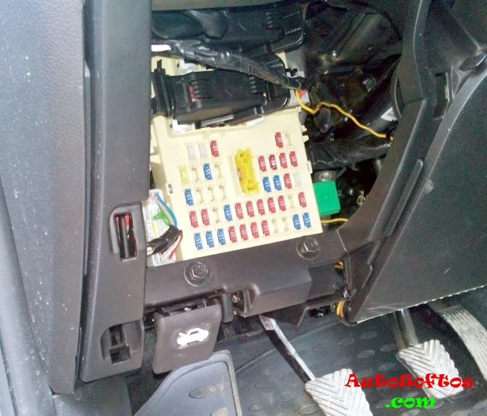 Находится в салоне под панелью, со стороны водителя, за защитной крышкой.