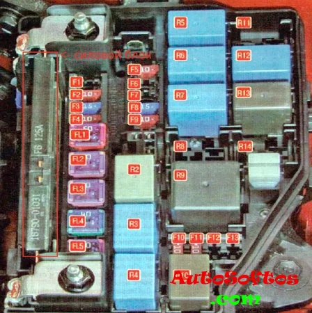 1. 50А Распределительная коробка панели приборов, реле задних фонарей