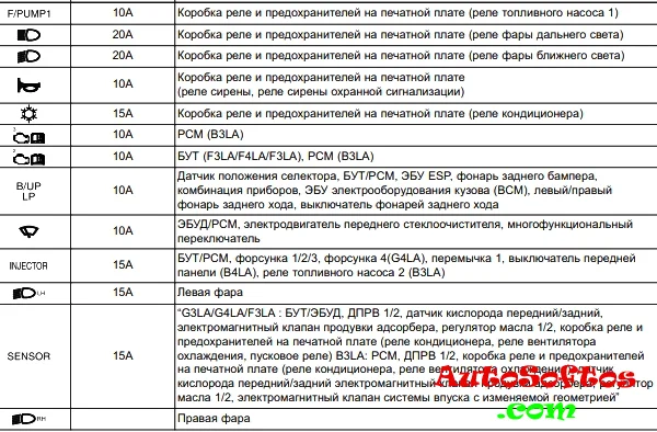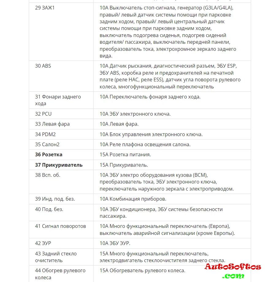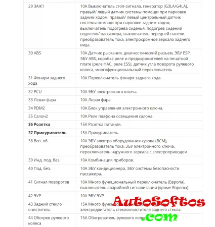 За дополнительные розетки и прикуриватель отвечают предохранители с номерами 36 и 37 на 15А.