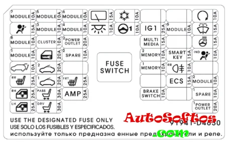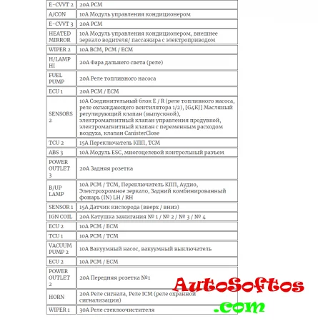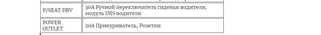 Предохранители отвечающие за прикуриватели и USB розетки обозначены как POWER OUTLET.