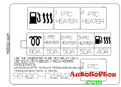 40А – Обогревателя топливного фильтра (реле)