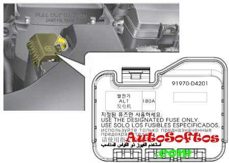 Главный силовой предохранитель находится на плюсовой клемме аккумуляторной батареи и выполнен в виде плавкой вставки высокой мощности.