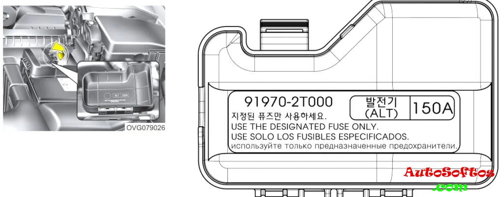 Главный силовой предохранитель находится на плюсовой клемме аккумуляторной батареи и выполнен в виде плавкой вставки.