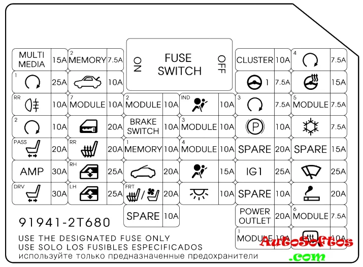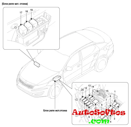 Здесь мы представим для ознакомления описание предохранителей и реле Кио Оптима 3 го поколения со схемами блоков и местами их расположения. Выделим предохранитель отвечающий за прикуриватель.