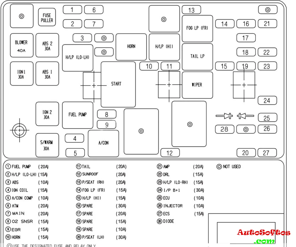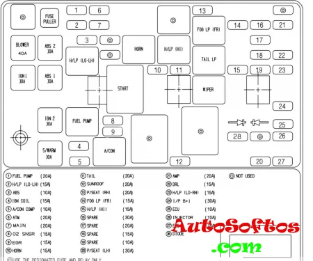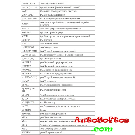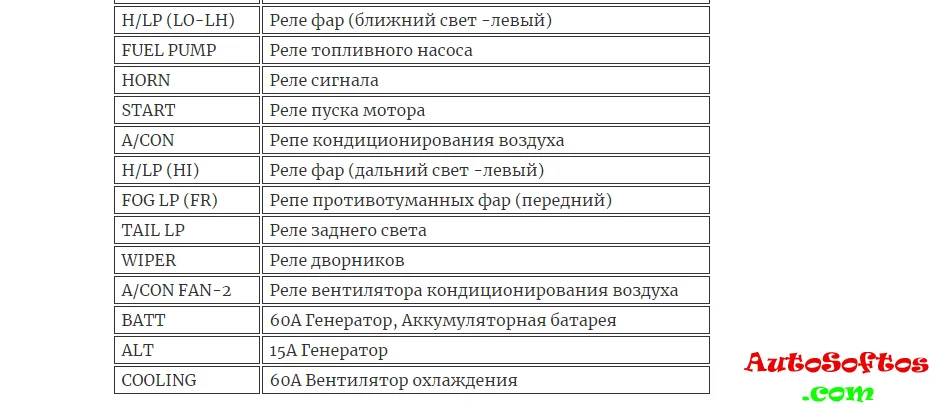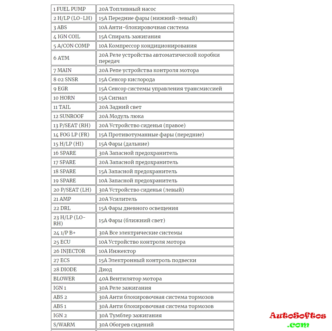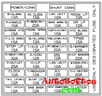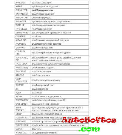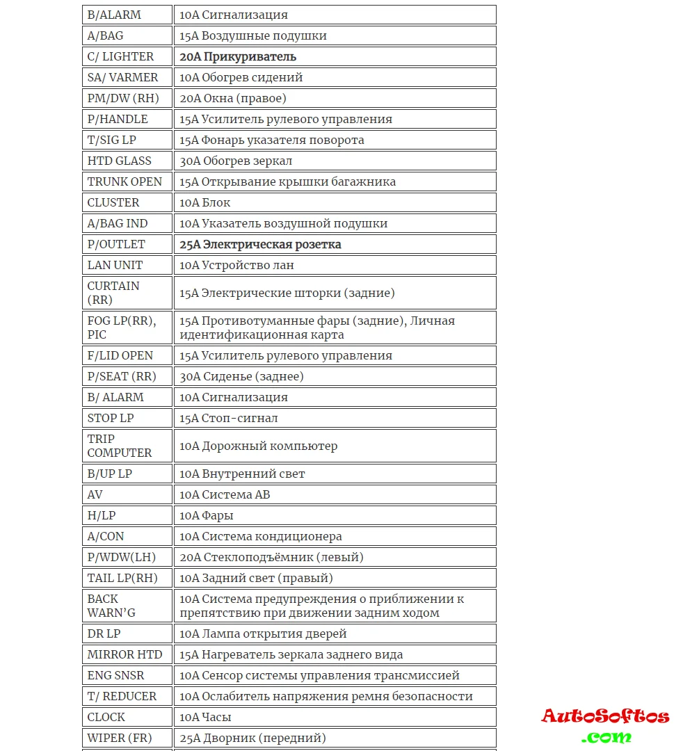 Здесь мы покажем описание предохранителей и реле Киа Опирус со схемами блоков и местами их расположения. Отметим предохранитель отвечающий за прикуриватель.