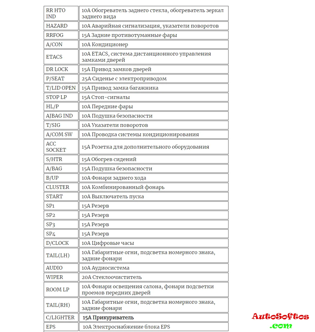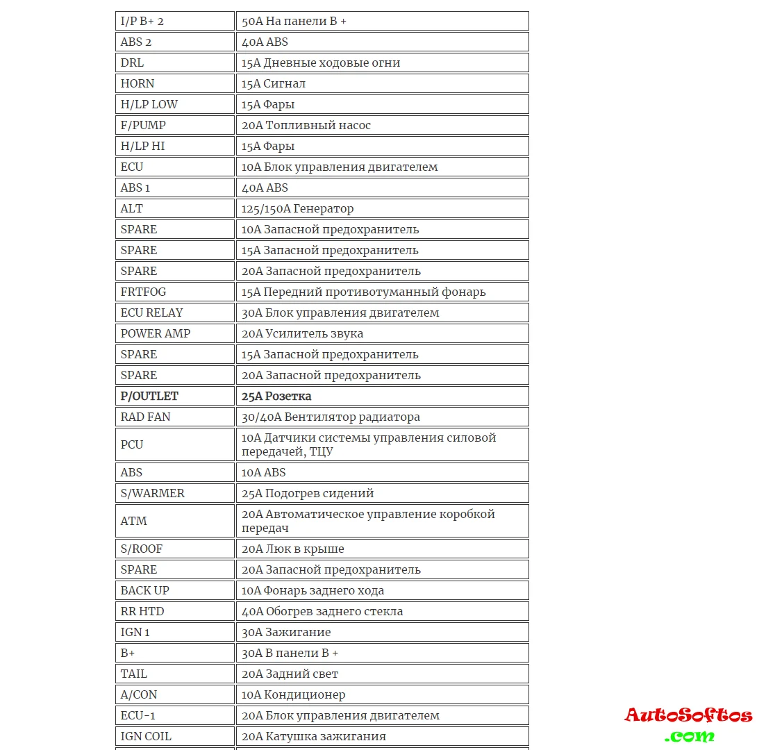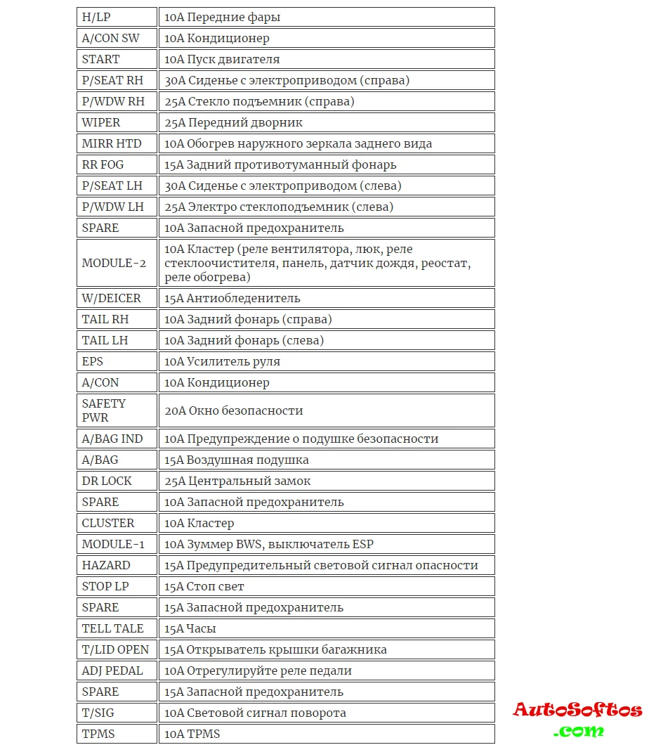 Расшифровка предохранителей