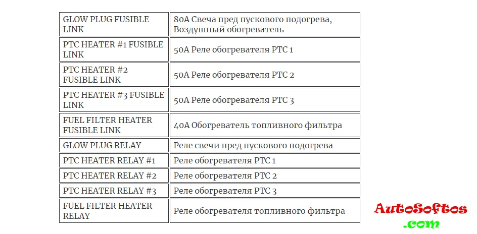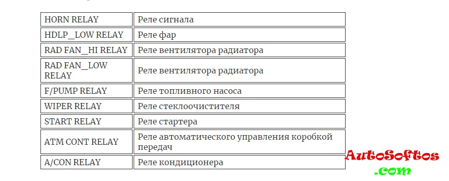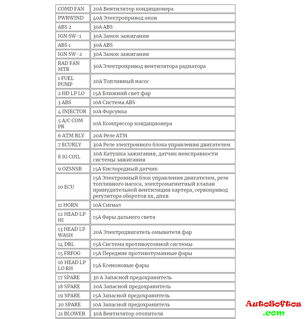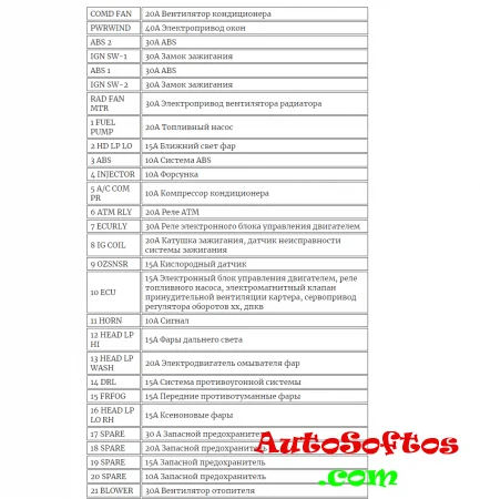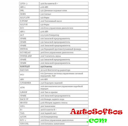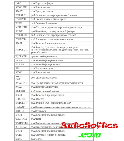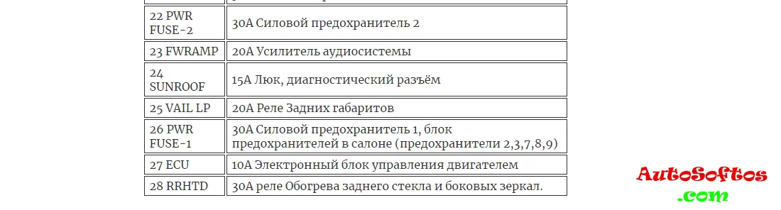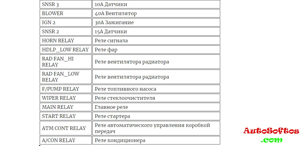 Расшифровка предохранителей