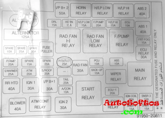 Здесь вы найдёте описание предохранителей и реле Киа Маджентис со схемами блоков и местами их расположения. Отметим предохранитель прикуривателя.