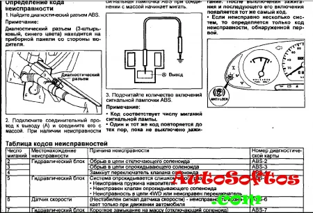 Под рулем откопал диагностический разъем АБС подал на контакт А массу и посчитал вспышки.