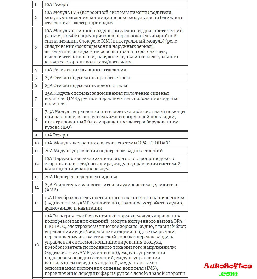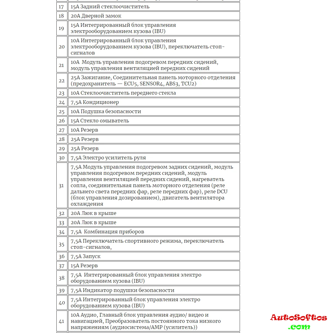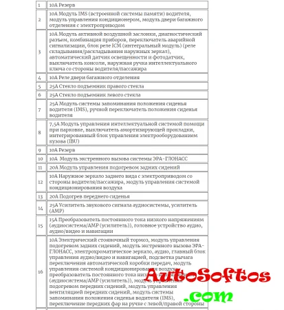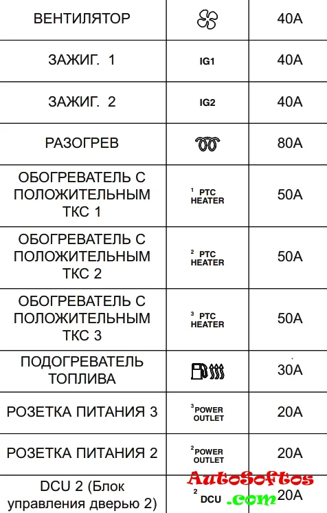 Назначение предохранителей