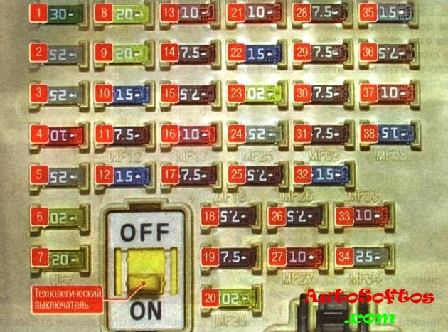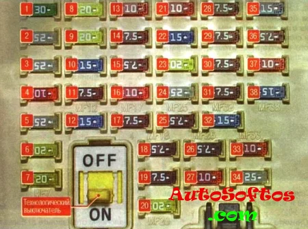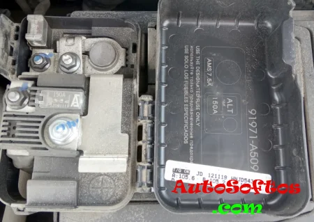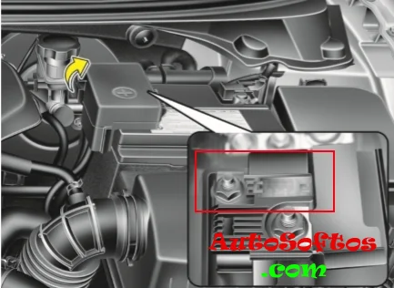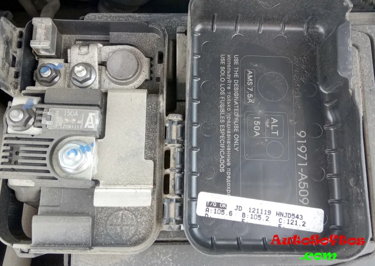Главный силовой мульти предохранитель находится на плюсовой клемме аккумуляторной батареи.