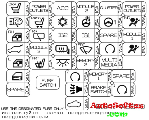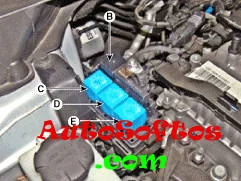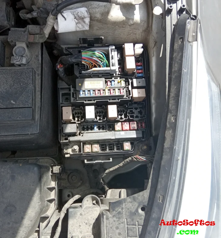 Главный блок предохранителей и реле находится в левой части подкапотного пространства.