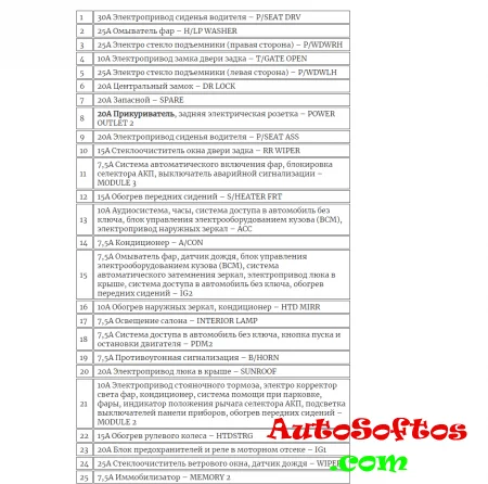 8. 50А Монтажный блок в салоне, правая блок-фара, противотуманные фары, задние фонари