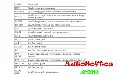 Здесь вы найдете описание предохранителей и реле Kia Bongo (модификации K2500, K2700, K2900, K3000) 2004, 2005, 2006, 2007, 2008, 2009, 2010, 2011, 2012, 2013, 2014, 2015, 2016, 2017 и 2018 годов выпуска со схемами блоков и местами их расположения. Выделим предохранитель отвечающий за прикуриватель.
