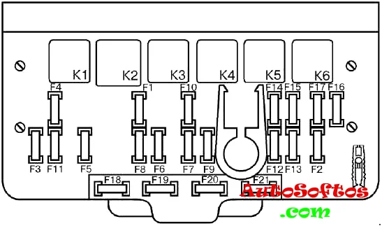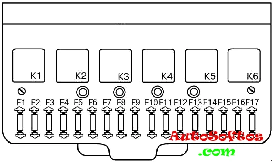 Главный блок с предохранителями и реле находится под капотом и может быть выполнен в 2-х вариантах (старого и нового образца). Актуальная схема будет нанесена на крышку блока.
