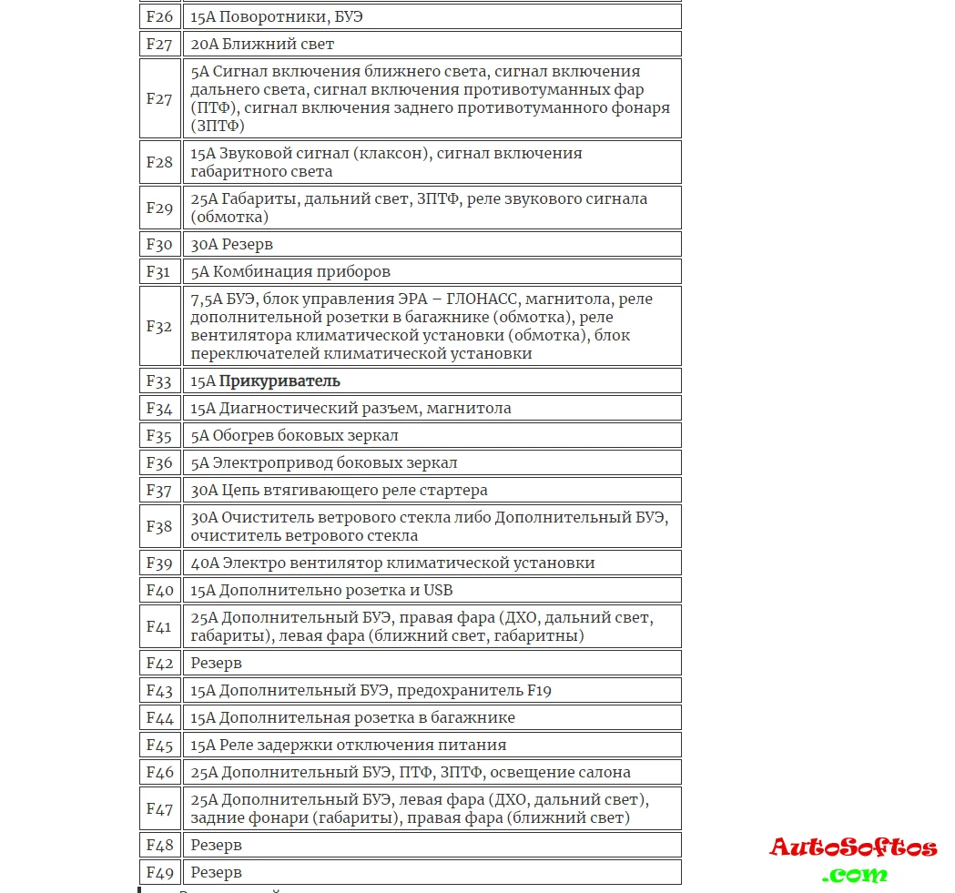 За передний прикуриватель отвечает предохранитель номер 33 на 15А, а за дополнительные разъёмы номера 40 и 44.