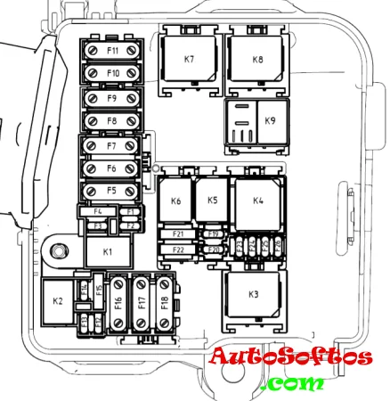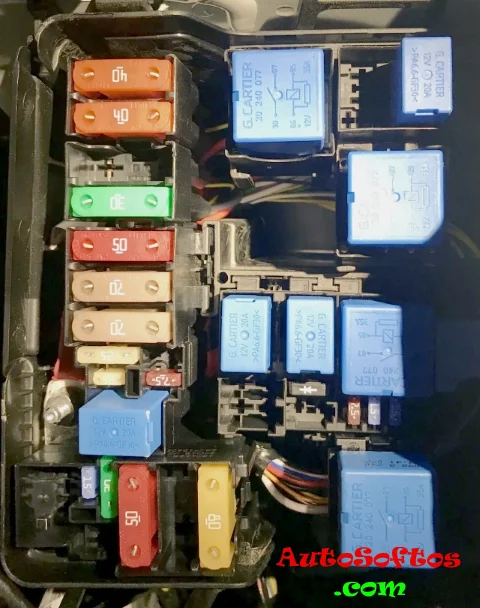 Расположен с левой стороны, рядом с аккумулятором, под защитной крышкой.Схема